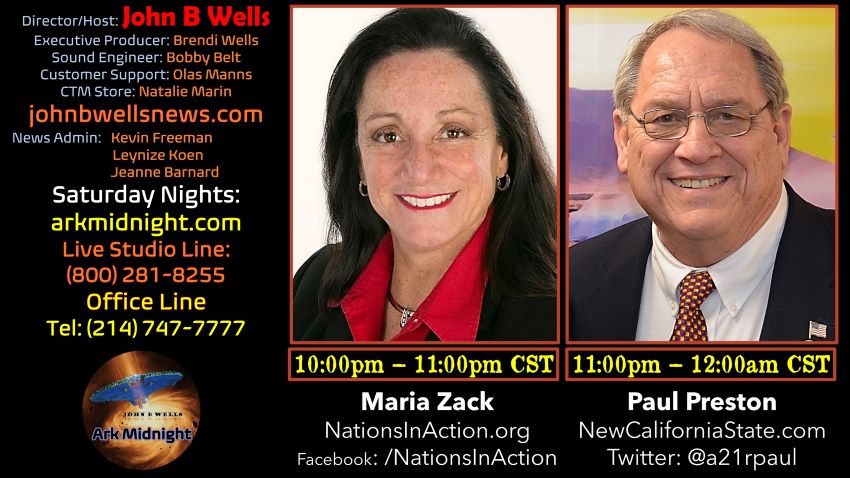 Maria Zack NationsInAction.org Facebook: /NationsInAction Paul Preston NewCaliforniaState.com Twitter: @a21rpaul Where to Watch YouTube :John B Wells CTM AM/FM :https://arkmidnight.com/stations/ Stream : Maria Zack If you have ever been to an Italian wedding, you have experienced the steady non-stop flow of amazing food. Tonight’s menu of delicious information is a similar feast. Italy’s culture, designers […]